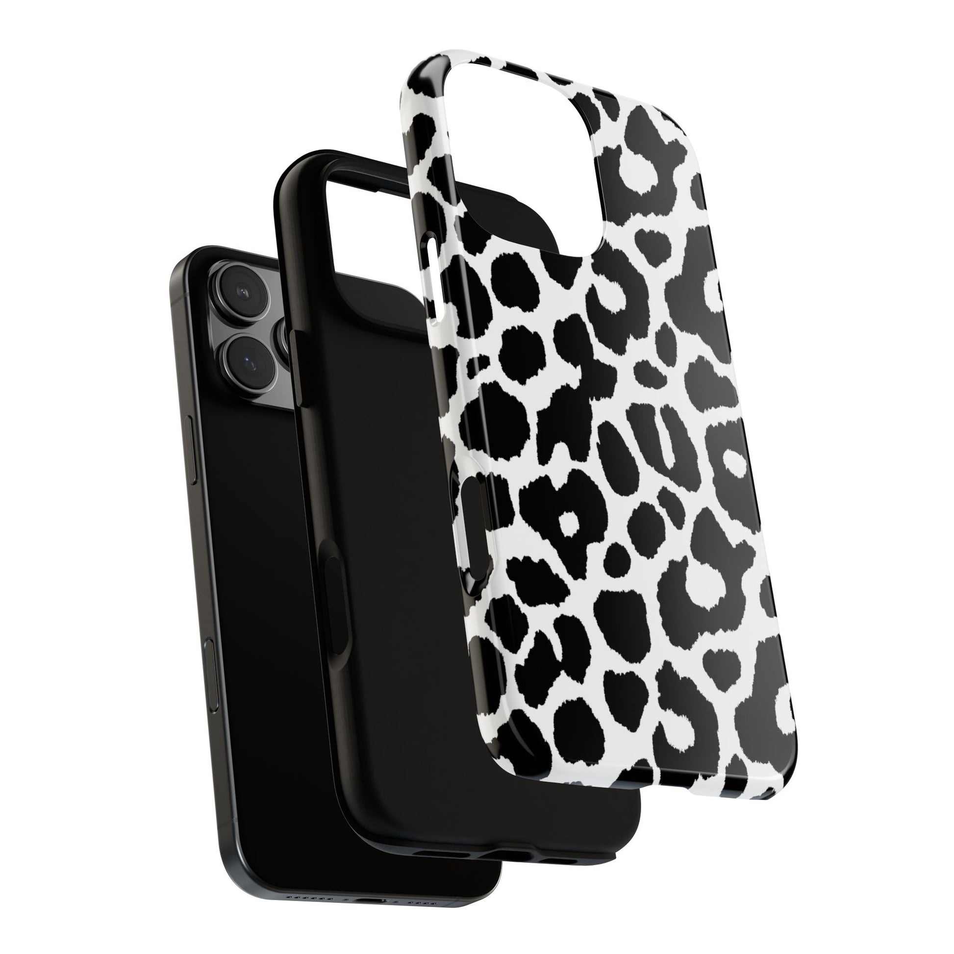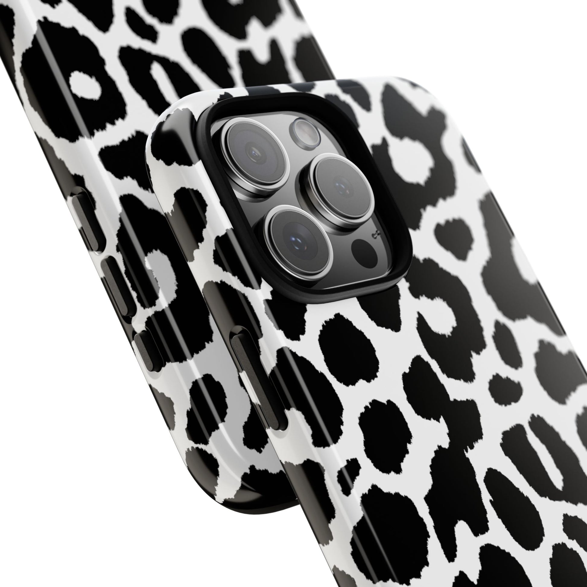 Make a bold style statement with the Black and White Leopard Print iPhone Case. This striking animal print design combines timeless monochrome tones with a sleek, modern look, perfect for fashion lovers who want their phone to stand out. Crafted from a tough shockproof shell, it offers everyday protection against scratches, bumps, and drops. Raised edges keep your screen and camera safe, while precision cutouts ensure easy access to all buttons, ports, and wireless charging. Lightweight and comfortable to hold, this leopard print phone case turns your iPhone into a chic accessory that pairs effortlessly with any outfit.