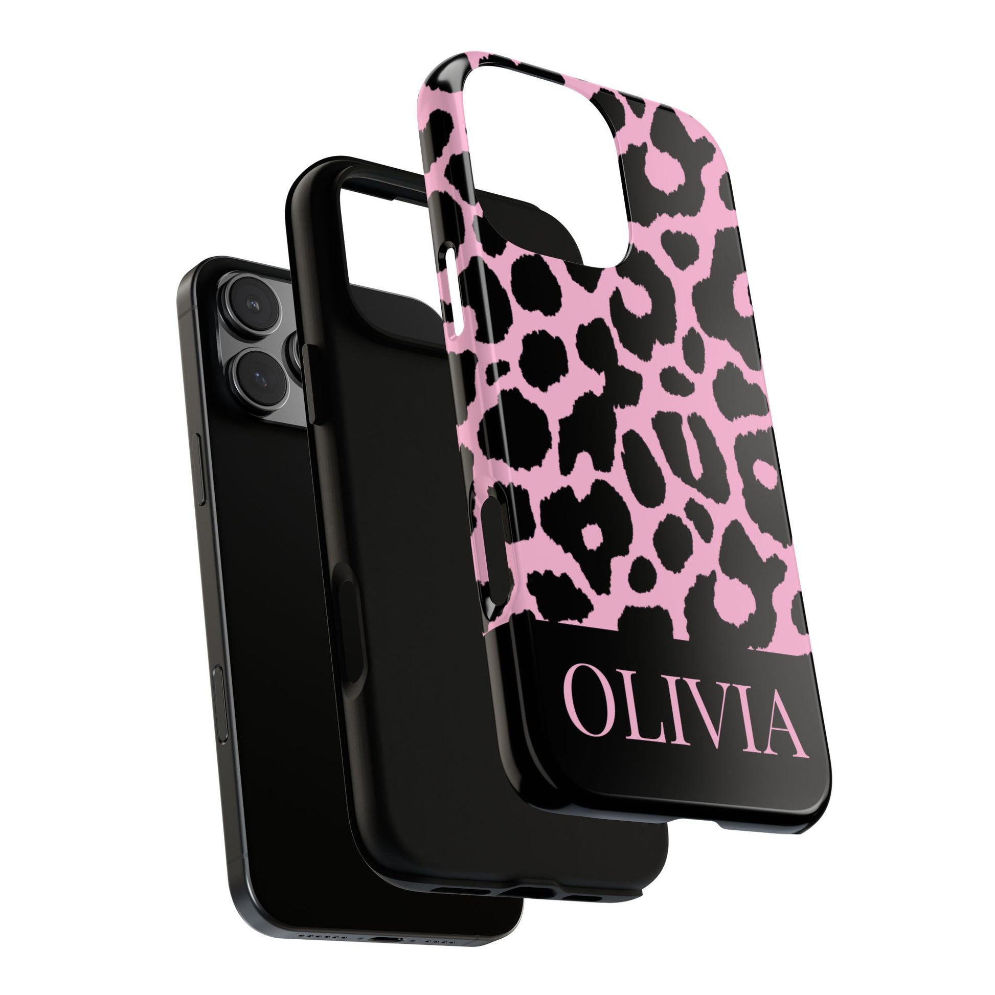 Chic Pink Black Leopard Print iPhone Case - Custom Name Cover