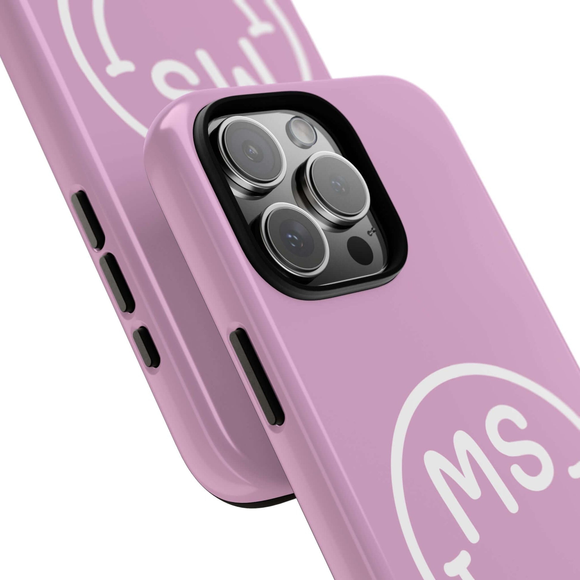 Give your iPhone a cheerful upgrade with our Personalized Initial Cute Smiley Face iPhone Case – Mauve. This mauve iPhone case pairs a soft purple-pink hue with a crisp white smiley outline for an effortlessly trendy phone case that pops. Customize it with 2 of your initials in a sleek, modern font for a truly custom initials phone case experience. Built with a dual-layer design, it features a shock-absorbing TPU bumper and a rigid PC back to shield against drops and scratches. Tough, wireless charging compatible, and perfect as a cute iPhone case for women, it’s both stylish and functional.