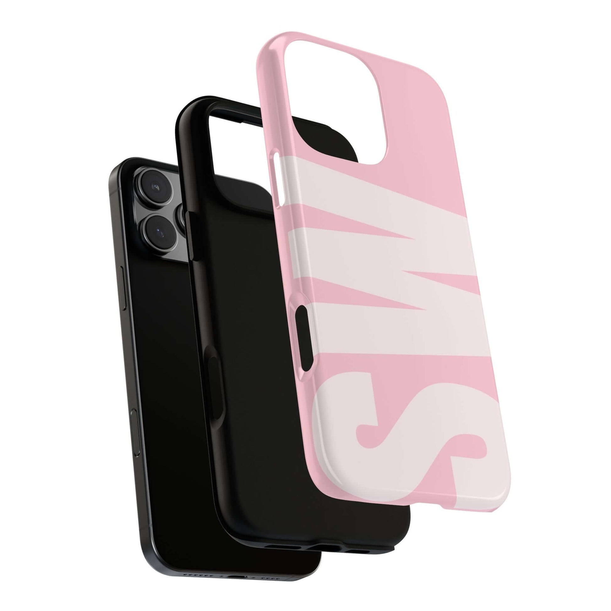 Protect your iPhone with style using our Millennial Pink Custom Initial Monogram Case. This tough, shockproof cover features your choice of initials on a trendy Millennial Pink backdrop. Crafted from dual-layer TPU and polycarbonate, it delivers military-grade drop protection, safeguards against scratches, and supports wireless charging. Precisely cut ports and responsive buttons ensure seamless access, while glossy finish give it a premium look. Perfect for women seeking a chic, personalized phone accessory, this durable monogram case makes an ideal gift - Shockproof Personalized Case.