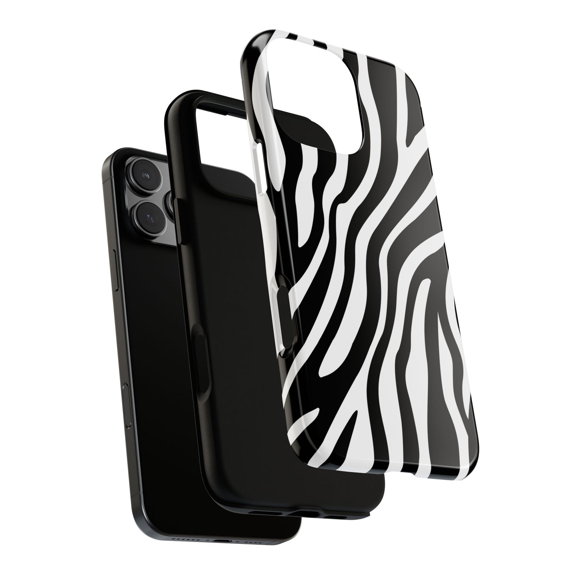 Turn heads with the Zebra Print iPhone Case - a black and white animal print phone case that delivers modern elegance and bold style. Graphic monochrome stripes give a timeless, runway-ready look that pairs effortlessly with casual or tailored outfits. The tough, lightweight shell protects against everyday bumps with raised edges for screen and camera safety, while precision cutouts preserve easy access to buttons, ports, and wireless charging. Its smooth, grippy finish feels luxurious in hand and resists fingerprints. Ideal for fashion-forward woman who want their phone to be a chic accessory as well as practical protection. Black & White Animal Print Phone Case